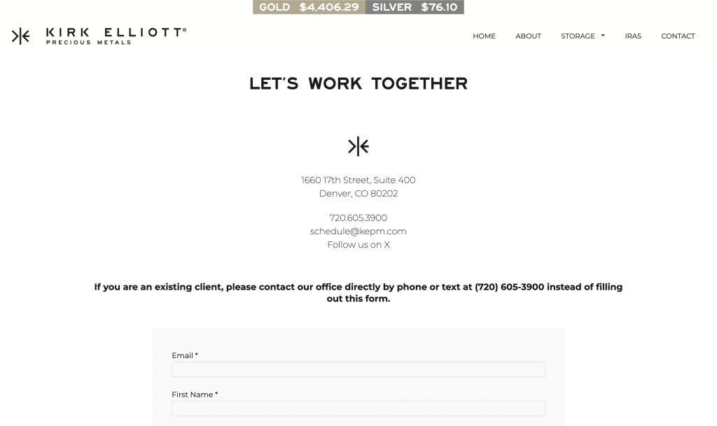 Kirk Elliott Precious Metals (KEPM) opened its doors on September 20, 2013, in Denver, Colorado. The company has now operated for over 12 years, serving clients across all 50 states from their headquarters at 1660 17th Street, Suite 400.